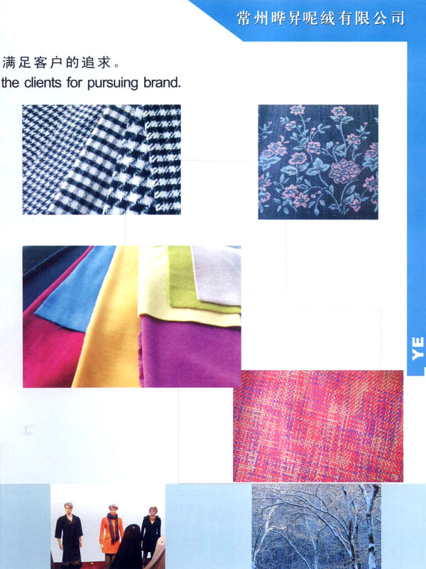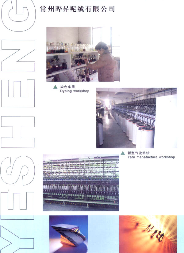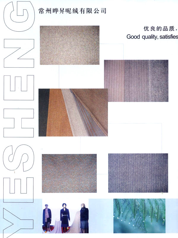 我廠成立于1999年,占地面積占60000平方米。固定資產有6000萬元。年銷售額達到1億元,全廠職工有600余人,技術員工超過80人,我廠主要經營以粗毛紡為主的各式面料,以外銷為主,有一條完整的流水生產線,從原料一染色一紡紗一織造一后整理。我廠擁有12個染缸,日產量為6噸,精紡3600錠,粗紡8個臺套,劍桿織機60臺,后整理有全套精粗紡加工設備。主要產品有:羊絨,粗花呢,免羊毛,雙面呢,法蘭絨,精紡花呢,維羅呢,阿爾巴卡等,以及各類格子花呢。近年來本企業(yè)利用地區(qū)優(yōu)勢勢力開發(fā)新品,在原有的基礎上開發(fā)出各種備受親睞的花式呢料。如格子花呢,緞染花呢,粗毛絨呢,提花呢,并于2000年通過ISO9002認證。本廠產品主要銷往歐洲,日本,韓國,法國,加拿大,美國,歡迎廣大客戶前來垂詢合作。本廠有志與世界的品牌建立良好的合作關系。