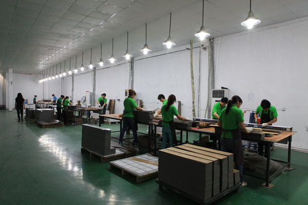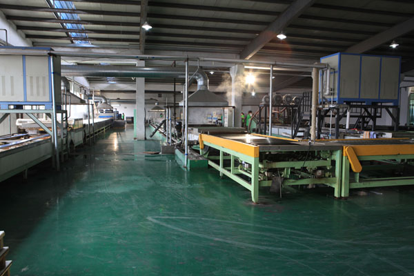 公司目前有4條專業(yè)PVC地板線,主要設備包括;全自動投料設備2套、,四輥密煉、開練機4套,淋膜回火線5條,各種規(guī)格的油壓機39組、進口豪邁開槽線4條,智能化沖床12臺,每天可生產(chǎn)20000㎡左右的各種規(guī)格地板,每月出口近300個集裝箱貨柜至世界各地。