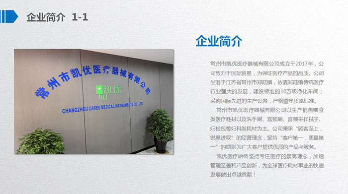 常州市凱優(yōu)醫(yī)療器械有限公司成立于2017年,是一家專注于研究、開發(fā)、生產(chǎn)及銷售喂食類醫(yī)療耗材、醫(yī)用泌尿類耗材、婦科類檢查器械、口罩等產(chǎn)品于一體的現(xiàn)代化企業(yè)。公司坐落于常州市天寧區(qū)鄭陸鎮(zhèn)一天寧高新區(qū)。我們的產(chǎn)品先后通過FDA、CE、ISO等認證。 公司成立至今,始終秉承“顧客至上,銳意進取”的經(jīng)營理念,先后獲得守合同重信用企業(yè)、國家質量服務信譽AAA級企業(yè)等榮譽。我們擁有經(jīng)驗豐富的銷售團隊、各類專業(yè)的技術人才、熟練操作的員工以及數(shù)臺國內外先進的設備,敦力于為客戶提供最優(yōu)質的服務和支持。我們以先進的技術和科學的管理為依托,堅持實施品牌戰(zhàn)略,在競爭激烈的醫(yī)療器械行業(yè)內,我們注重追求自主設計研發(fā),己累計推出自主研發(fā)專利十五余項。公司成立短短幾年的時間已經(jīng)實現(xiàn)了跨越式發(fā)展,產(chǎn)品遠銷東南亞、東歐、北美等地區(qū),贏得,國內外客戶的一致贊譽。 長風破浪會有時,直掛云帆濟滄海。凱優(yōu)醫(yī)療如同翱翔的雄鷹,迎著希望,展翅飛翔。面對新的機遇與挑戰(zhàn),凱優(yōu)人定會憑借工匠精神,持續(xù)改進、不斷創(chuàng)新,為企業(yè)在激烈的市場競爭中以質取勝,確保行業(yè)領先地位,最終實現(xiàn),成為醫(yī)療耗材行業(yè)引領者的企業(yè)愿景。 凱優(yōu)醫(yī)療,因為專注所以卓越。