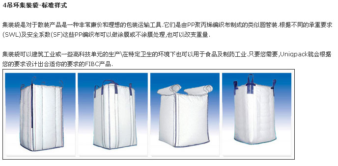 常州優(yōu)尼克包裝有限公司主要致力于柔性集裝袋、集裝箱內(nèi)襯袋、有紡?fù)凉げ技八芫幇b袋的生產(chǎn)與銷售。我們可以生產(chǎn)U型,四片型,圓筒、拉筋等多種設(shè)計款型的的集裝袋及特殊規(guī)格要求的集裝袋; 包括Type A, TypeB, TypeC, 耐高溫及耐低溫的袋子, 食品級的袋子. 我們的產(chǎn)品廣泛用于化工行業(yè)、食品行業(yè)、染料顏料行業(yè)、炭黑行業(yè)、采礦行業(yè)及建筑行業(yè)等許多行業(yè)領(lǐng)域中。