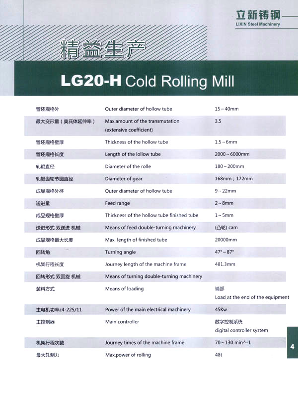 常州立新特種耐熱鑄鋼有限公司,地處江南水鄉(xiāng)古鎮(zhèn)一武進橫林,是全國著名的強化地板之鄉(xiāng)。 本廠歷史悠久,技術力量雄厚,制造設備齊全。擁有先進的鑄造生產線,1噸中頻感應加熱熔煉電爐;先進的化學分析設備和大型機床加工、埋弧堆焊機、電熱回火爐、拋丸機等。 公司依靠科學進步,結合國外先進技術和國內需求,自行設計制造LGl5一H、LG20一H、LG30一H、LG40一H、LG50一H、LG60一H、LGl20一H型系列長行程環(huán)孔冷軋管機。對不銹鋼、碳鋼和有色金屬大減徑、大減壁軋制。亦可生產耐熱鑄鋼件、普通鑄鋼件、大型離心澆鑄件、大型軋輥堆焊等,同時可以為客戶加工生產大中型硬齒面齒輪及各類機械零部件備件。 公司另有焊管生產線1條,可生產直徑8—32mm的精密焊管、矩形管、冷拔管。應用于各種燈具生產及其它工業(yè)生產。 本公司注重產品質量,在同行業(yè)中率先通過了IS09000質量體系認證,并以優(yōu)良的服務取信于客戶。我們的宗旨是:質量第一、信譽第一、價格合理、交貨及時,竭誠歡迎國內外客戶來人來函聯(lián)系洽談業(yè)務、光臨指導!