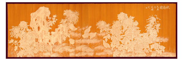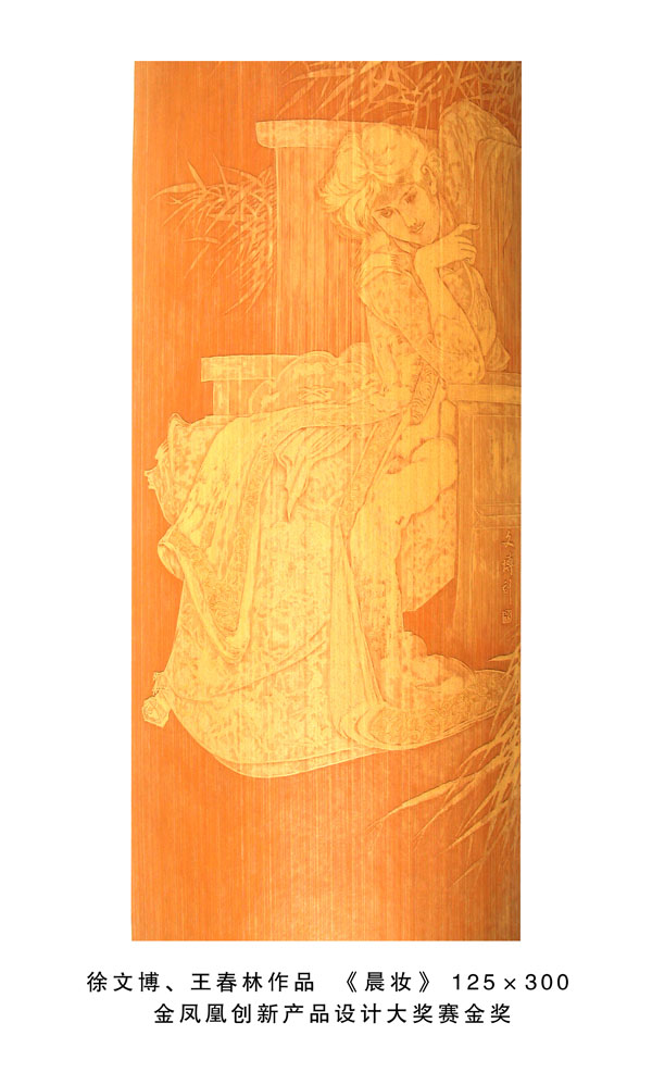 得獎情況 1、扇形擺件《花鳥》2004年9月太湖博覽會金獎 2、《蘭亭序》2008年11月江蘇藝博杯工藝美術(shù)精品獎銀獎 3、《雄風圖》2008年11月江蘇藝博杯工藝美術(shù)精品獎創(chuàng)意獎 4、《靜音》2008年11月“天工藝苑•百花杯”中國工藝美術(shù)精品獎銀獎 5、《人物》2008年12月中國收藏藝術(shù)精品博覽會金獎 6、《花鳥》200 8年12月中國收藏藝術(shù)精品博覽會銀獎 7、《青竹鳥語》2008年12月中國收藏藝術(shù)品博覽會“入圍收藏品” 8、《吉祥富貴》2009年3月“金鳳凰”創(chuàng)新產(chǎn)品設(shè)計大獎賽金獎 9、《黃山云!2009年10月江蘇藝博杯工藝美術(shù)精品獎金獎 10、《花鳥》2009年10月第二屆江蘇旅游商品博覽會最佳產(chǎn)品獎 11、《秋菊圖》2009年11月“天工藝苑•百花杯”中國工藝美術(shù)精品獎銀獎 12、《秋鷹圖》2010年3月“金鳳凰”創(chuàng)新產(chǎn)品設(shè)計大獎賽優(yōu)秀獎 13、《花鳥四屏》2010年3月“金鳳凰”創(chuàng)新產(chǎn)品設(shè)計大獎賽銅獎 14、《荷塘清暑》2010年5月深圳國際文化產(chǎn)業(yè)博覽交易會銅獎 15、《溪山煙云圖》2010年9月江蘇藝博杯工藝美術(shù)精品大獎賽金獎 16、《高士臨風圖》2010年10月“天工藝苑•百花杯”中國工藝美術(shù)精品獎銀獎 17、《溪山煙云圖》2010年11月第二屆東方工藝美術(shù)之都博覽會“迎春花獎” 18、《深山尋隱圖》2011年3月“金鳳凰”產(chǎn)品設(shè)計大獎賽銅獎 19、《欣欣向榮》2011年5月深圳國際文化產(chǎn)業(yè)博覽交易會金獎 20、《江崖遠眺圖》2011年9月江蘇藝博杯工藝美術(shù)精品大獎賽金獎 21、《富春山居圖》2011年10月“天工藝苑•百花杯”中國工藝美術(shù)精品獎金獎 22、《深山訪友》2011年11月中國無錫國際文化藝術(shù)博覽會銀獎 23、《幽谷清音》2012年3月“金鳳凰”創(chuàng)新產(chǎn)品設(shè)計大獎賽銅獎 24、《群芳競艷》2012年10月“儒仕儒家、百花杯”中國工藝美術(shù)精品博覽會金獎 25、《山村渡口圖》2012年12江蘇藝博杯工藝美術(shù)精品大獎賽金獎。 26、《晨妝》2013年4月“金鳳凰”創(chuàng)新產(chǎn)品設(shè)計大獎賽金獎。 27、《和風圖》2013年6月中國(青島)工藝美術(shù)博覽會創(chuàng)新產(chǎn)品設(shè)計大賽金獎。 28、《松壑聽泉》2013年9月江蘇藝博杯工藝美術(shù)精品大獎賽銀獎。 29、《君子圖》2013年11月“國信•百花杯”中國工藝美術(shù)精品獎銀獎 30《碧水輕舟》2014年5月深圳國際文化產(chǎn)業(yè)博覽交易會銀獎。 31、《千巖萬壑圖》2014年10月“中國原創(chuàng)•百花杯”中國工藝美術(shù)精品獎金獎 32、《溪山訪友圖》2014年10月江蘇藝博杯工藝美術(shù)精品大獎賽銀獎 33、《深山云壑》2014年12月深圳冬季國際文化產(chǎn)業(yè)博覽交易會金獎 34、《鷹》2015年深圳文化產(chǎn)業(yè)博覽交易會獲“中國工藝美術(shù)文化創(chuàng)意獎”金獎