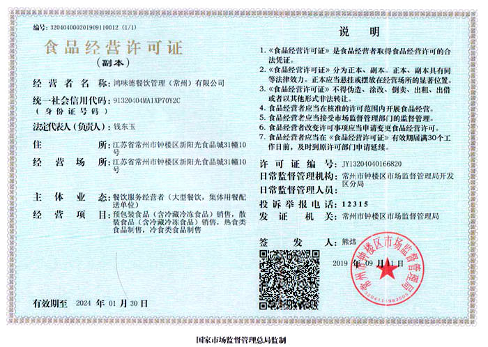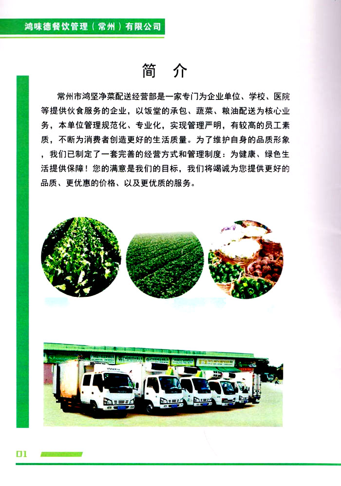 鴻味德餐飲管理(常州)有限公司是一家專門為企業(yè)單位、學(xué)校、醫(yī)院等提供伙食服務(wù)的企業(yè),以飯?zhí)玫某邪、蔬菜、糧油配送為核心業(yè)務(wù),本單位管理規(guī)范化、專業(yè)化,實(shí)現(xiàn)管理嚴(yán)明,有較高的員工素質(zhì),不斷為消費(fèi)者創(chuàng)造更好的生活質(zhì)量。為了維護(hù)自身的品質(zhì)形象,我們已制定了一套完善的經(jīng)營(yíng)方式和管理制度:為健康、綠色生活提供保障!您的滿意是我們的目標(biāo),我們將竭誠(chéng)為您提供更好的品質(zhì)、更優(yōu)惠的價(jià)格、以及更優(yōu)質(zhì)的服務(wù)。