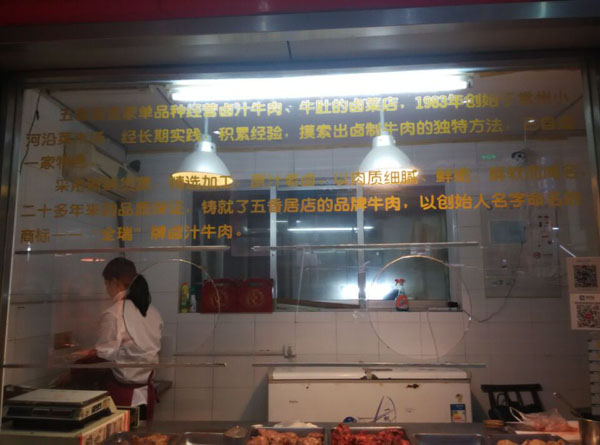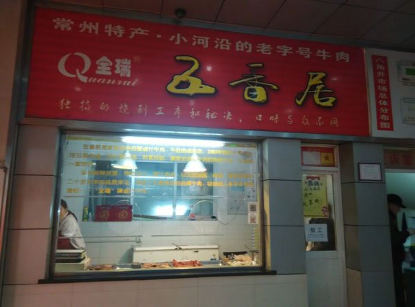 天寧區(qū)五香居牛肉店經(jīng)營鹵汁牛肉、牛肚的鹵菜店,1983年創(chuàng)始于常州小河沿菜市場,經(jīng)長期實踐,積累經(jīng)營、摸索出鹵汁牛肉的獨特方法,已自成一家特色。 采用新鮮貨源,精選加工、原汁原味,以肉質(zhì)細(xì)膩、鮮嫩,口味獨特成為二十多年來品質(zhì)的保證,鑄就了五香居店的品牌牛肉,以,創(chuàng)始人名字命名的商標(biāo)——“全瑞”牌鹵汁牛肉。