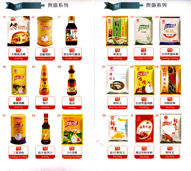 公司占地面積23500平方米,花園式工廠、廠房面積18500平方米,員工330余名,其中擁有中、高級職稱管理和技術(shù)人員58名,生產(chǎn)場地均按食品和藥品GMP要求設計、全封閉車間、中央空調(diào)系統(tǒng)、閉路電視監(jiān)控系統(tǒng)。已建成成三條雞精,雞粉生產(chǎn)線。一條雞汁生產(chǎn)線。一條鮮味汁生產(chǎn)線。一條醬汁精膏類生產(chǎn)線,規(guī)劃年生產(chǎn)能力達30000噸。 "賀盛"品牌取自《詩·大雅·下武》中"受天之祜、 四方來賀";《易經(jīng)》中"富有謂之大業(yè),日新之謂盛德",賀盛企業(yè)師法源遠流長中華飲食文化,融匯中西健康美食調(diào)味。相繼研發(fā)生產(chǎn)出高品質(zhì)的"賀盛牌"味精、雞精、雞粉、雞汁、湯王、鮑魚醬王、鮮味汁調(diào)味素和各種風味熱反應精膏等系列產(chǎn)品。二十年來"賀盛"產(chǎn)品質(zhì)量獲得廚藝界專業(yè)人士和消費者的一致好評和高度認可。 賀盛企業(yè)和產(chǎn)品相繼榮獲1995年"首界中國國際食品博覽會金獎",2001年企業(yè)通過ISO-9001國際質(zhì)量體系認證,2003年江蘇省"計量保證確認單位",2004年獲得自營出口權(quán),2005年賀盛雞精榮獲"江蘇名牌產(chǎn)品",2006年賀盛商標被評為"江蘇省著名商標",2007年通過HACCP認證,全部產(chǎn)品均通過QS食品安全認證,并積極努力爭創(chuàng)中國名牌,中國馳名商標。 公司銷售網(wǎng)點建設發(fā)展迅速,相繼組建上海、南京、河南、海南、新疆全資分公司;辦事處、經(jīng)銷商覆蓋全國,并出口日本、香港及東南亞地區(qū)。二十年來,在公司總裁周國林先生帶領下,全體同仁秉承"厚德載物、自強不息"宗旨,發(fā)揚"以人為本、科技創(chuàng)新、自我加壓、爭創(chuàng)一流"的企求精神;致力于傳承中華飲食文化,融化西方美食精粹,不斷的研發(fā)、創(chuàng)新,奉獻更多更好的調(diào)味料,讓生活更有滋味。