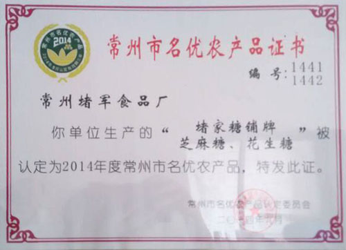 “堵家糖鋪”牌芝麻糖。2013年度生產(chǎn)量已達(dá)100噸左右實(shí)現(xiàn)銷量額為250萬元,同時(shí)本廠的產(chǎn)品已進(jìn)入“瑞和泰"“好比家”“名仁”常州機(jī)場等高端銷售區(qū)域,并與“瑞和泰”形成戰(zhàn)略合作伙伴關(guān)系:為瑞和泰貼牌加工生產(chǎn)。 常州堵軍食品廠生產(chǎn)的芝麻糖是以:大米和麥芽用相傳百年歷史的循環(huán)水濾蒸煮法提煉出其中的麥芽糖漿,再用芝麻,花生,桂花,橘皮,面粉為輔料,歷23道工序手工制作而成。它是一種具有營養(yǎng)豐富性和抗衰老性食品。富含蛋白質(zhì),脂肪,維生素A,維生素B,鈣鐵鎂,卵磷脂,硫胺素等營養(yǎng)元素。 全麥芽芝麻糖是一種獨(dú)具地方特色的大眾性休閑食品。有其獨(dú)特的地方性和文化性。無論是逢年過節(jié)還是日常生活都是饋贈(zèng)親友,款待賓客的首選佳品之一。