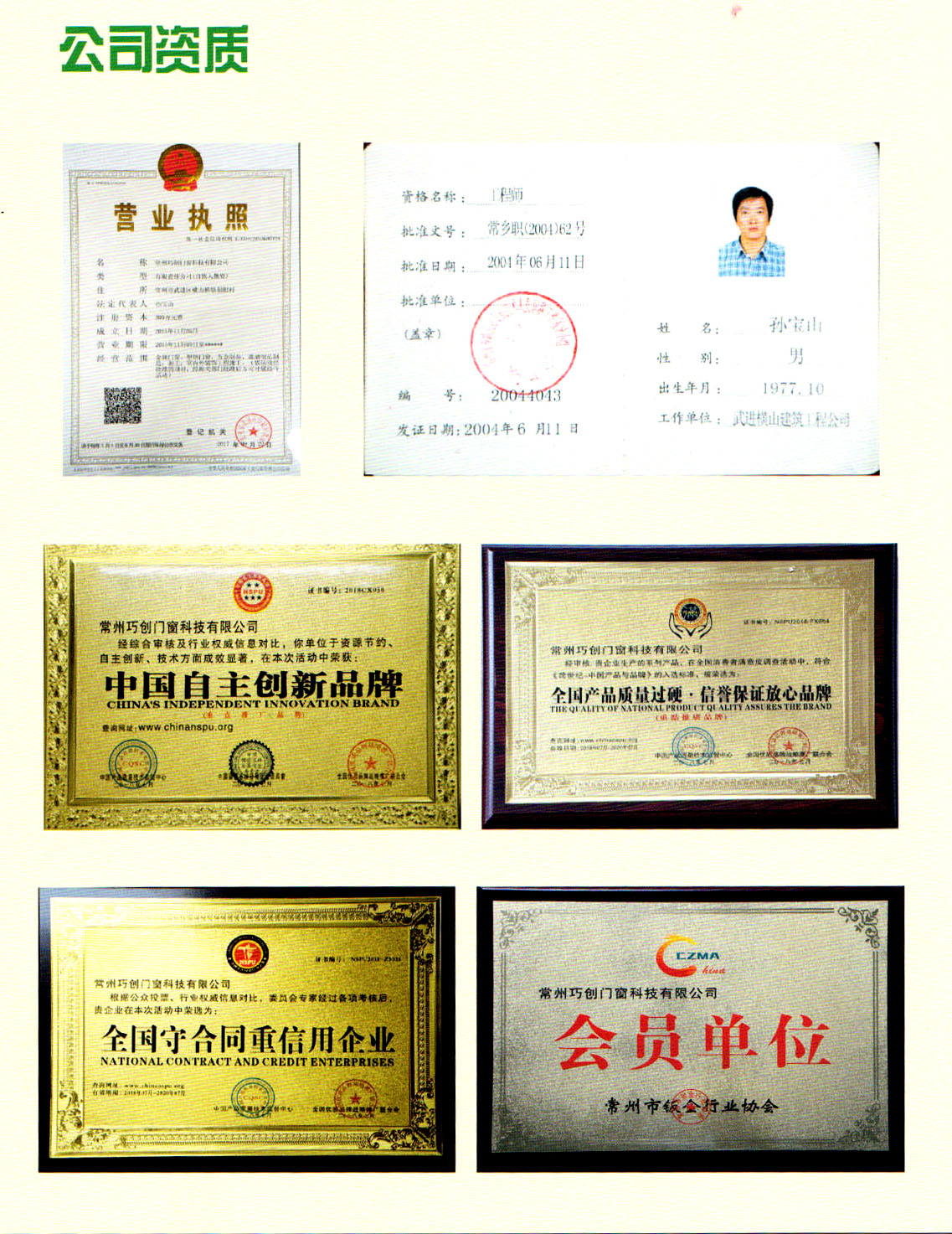 常州巧創(chuàng)門窗科技有限公司成立于1995年,坐落于江蘇省常州市橫山橋鎮(zhèn)朝陽經(jīng)濟(jì)開發(fā)區(qū)。公司占地面積18000平米,現(xiàn)有員工180人。是一個(gè)集設(shè)計(jì)、生產(chǎn)、加工、安裝、經(jīng)營(yíng)與一體的具有規(guī)模性的現(xiàn)代化企業(yè)。 公司本著堅(jiān)持“以人為本,追求卓越”的理念,堅(jiān)持以質(zhì)量求生存、以信譽(yù)求發(fā)展的方針,始終把質(zhì)量和顧客利益放在首位,在同行業(yè)中獨(dú)樹一幟,享有盛譽(yù)、以優(yōu)質(zhì)的產(chǎn)品、先進(jìn)的技術(shù)為客戶提供一流的服務(wù)。