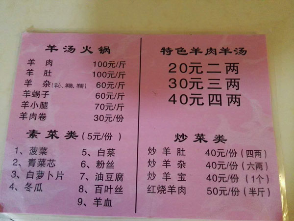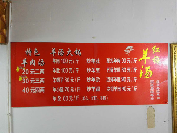 天寧區(qū)紅梅奧彩小吃店(紅梅羊湯店)成立十四年,特色是羊湯, 羊肉是中國(guó)人民食用的主要肉類之一.羊肉比其他肉類的肉質(zhì)要細(xì)嫩,而且膽固醇含星低。相對(duì)其他肉類而言,羊肉蛋白質(zhì)含量較多,脂肪含量較少。維生素B1、B2、B6以及鐵、鋅、硒的含量頗為豐富。此外,羊肉肉質(zhì)細(xì)嫩容易消化吸收.多吃羊肉有助于提高身體免疫力。 羊肉熱量比牛肉要高.中醫(yī)認(rèn)為,羊肉具有補(bǔ)精血,益虛勞.溫中健脾,補(bǔ)腎壯陽(yáng),養(yǎng)薛等功能,尤其適合老年人、體虛的人群食用。 羊肉的大部分脂肪都可看得見,很容易去除。羊腿部肉、肋骨和腰部肉比肩胛肉瘦。每100克烤羊腿中.含蛋白質(zhì)28克、脂肪7克、膽固醇100毫克.能提供的熱量是757.7千焦。 羊羔肉富含蛋白質(zhì)、鋅和維生素B族,其中煙酸、維生素B2和維生素B12的含量壟基圭富.羊羔肉中鎂、鉀和磷的含量也較高,并易于吸收。