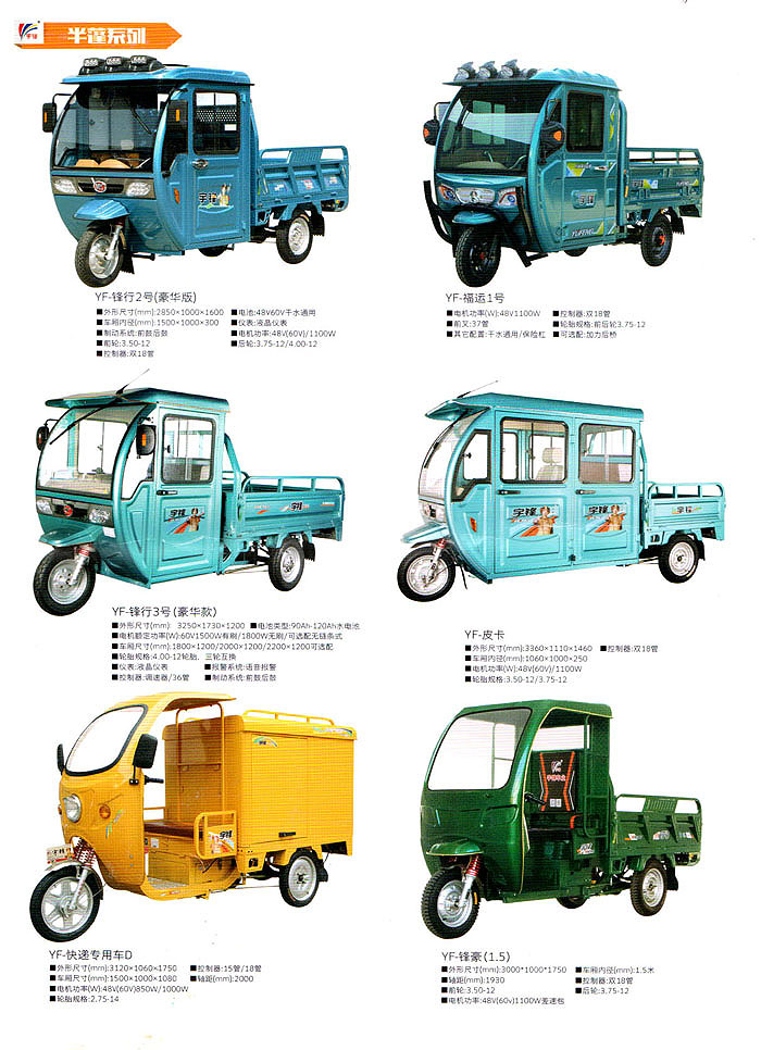 宇鋒車業(yè)創(chuàng)建于1995年,廠區(qū)面積10萬平方米,擁有專業(yè)技術(shù)人員100余名,是國內(nèi)領(lǐng)先的電動車研發(fā)與生產(chǎn)制造的廠家,也是專業(yè)從事研究、開發(fā)、制造電動車和新能源車的高新技術(shù)企業(yè)。 作為中國三輪車行業(yè)的開拓者,宇鋒擁有行業(yè)先進的機器人焊接線、自動化前處理線、自動化電泳噴涂和烘烤設(shè)備,公司擁有一流的整裝作業(yè)線,包括先進的沖擊、焊接、涂裝和總裝四大高品質(zhì)整車制造工藝設(shè)備,嚴(yán)格按汽車的標(biāo)準(zhǔn)來要求自己的產(chǎn)品。 宇鋒工廠各種檢測設(shè)備齊全,采用先進的生產(chǎn)工藝,高標(biāo)準(zhǔn)的質(zhì)量管理體系,產(chǎn)品質(zhì)量嚴(yán)格把控。已形成電動三輪車和新能源車的研發(fā)、制造、銷售和售后為一體的星級服務(wù)體系,堅持為消費者提供6S服務(wù)體系。 宇鋒產(chǎn)品擁有電動三輪車、新能源車和電動兩輪車等八大系列近百個型號品種,公司堅持自主研發(fā)自主制造,并順利通過ISO9001:2008質(zhì)量管理體系認證和ISO14001:2004國際環(huán)境管理體系認證。 宇鋒車業(yè)獲得工信部摩托車生產(chǎn)企業(yè)資質(zhì), 已有二十多款車型通過工信部目錄公告。宇鋒電動三輪車通過國家CCC認證,并由中國人民財產(chǎn)保險股份有限公司承保,有大合格證和車輛一致性證書,宇鋒電動三輪車上牌安全無憂! 在出口方面,宇鋒積極配合國家“一帶一路”政策的開展,在電動車行業(yè)里率先踐行走出去的戰(zhàn)略,依靠過硬的產(chǎn)品質(zhì)量和優(yōu)質(zhì)的服務(wù),贏得了國外客戶的信賴和歡迎,2018年宇鋒車業(yè)在印度新德里建立制造工廠并良好運營,宇鋒產(chǎn)品遠銷印度、中亞、東南亞等二十多個國家,產(chǎn)品出口連續(xù)多年位居行業(yè)突出位置。
