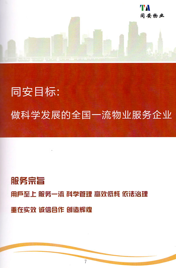 常州市同安物業(yè)管理有限公司注冊(cè)1999年,發(fā)展至今已有多年歷史,本公司坐落于美麗的龍城常州,秉承“融聚無限未來”的核心理念,融專業(yè)認(rèn)才,匯優(yōu)質(zhì)資源以”專心,細(xì)心,耐心”的服務(wù)態(tài)度,為客戶打造“安心,順心,稱心”的服務(wù)感受。 公司始終以“打造中國最值得信賴和最值得尊重的物業(yè)管理服務(wù)集成商”為愿景自我鞭策,不斷前行。同安物業(yè)以客戶滿意為終極目標(biāo),不斷加強(qiáng)”崗位資格認(rèn)證能力,人才招聘與職業(yè)化培訓(xùn)能力,產(chǎn)品策劃與管理設(shè)計(jì)能力,品質(zhì)監(jiān)督與管控能力,技術(shù)更新與運(yùn)營優(yōu)化力“五大專業(yè)能力的培養(yǎng)和提升,實(shí)現(xiàn)“精品化管理,專業(yè)化服務(wù)”。 公司發(fā)展至今,員工總數(shù)近千余人,大專以上學(xué)歷200多人,中高級(jí)技術(shù)人員160人,維修人員140人,物業(yè)管理師80名,公司接管面積達(dá)3100000多平方米,設(shè)涉及住宅小區(qū),別墅,大型游樂場,公園,醫(yī)院,廠區(qū),商業(yè)等。公司的工作管理逐步導(dǎo)入ISO9001質(zhì)量體系和ISO4001環(huán)境管理體系和GB/T28001職業(yè)健康安全管理體系,嚴(yán)格按照質(zhì)量體系的標(biāo)準(zhǔn)執(zhí)行。