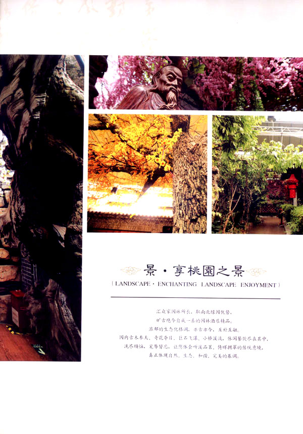 淹城花都溫泉水城孕育天地之精華,悅身、悅?cè)荨傂、悅神。置身其中泉水潺潺,霧氣繚繞、花瓣飄香,恍若仙境。“掬水月在手,弄花香滿衣”,花都溫泉的浪漫與溫潤在這里完美展現(xiàn)。 花都溫泉水城包括洗浴區(qū)、戲水世界、露天溫泉、自助餐廳、生態(tài)房、別墅區(qū)、紅文化房、VIP區(qū)等多種功能區(qū)域,是集溫泉養(yǎng)生、休閑住宿、演藝會務(wù)為—體的休閑度假勝地,給賓客帶來江南小鎮(zhèn)的浪漫水城之旅。 古木新枝畔賓客對酒當(dāng)歌,溪泉石椅旁把茶品啜。 淹城-三勤生態(tài)酒店,這里是一處綠色生態(tài)的美食家園。此地鬼斧神工.奇水異石,和風(fēng)細(xì)雨林中穿過,引百鳥朝來暮歌;這里集生態(tài)餐飲、演藝、中小型會務(wù)為一體,將現(xiàn)代裝飾風(fēng)格和古雅拙樸的自然裝修完美整合;這里聚集大江南北名廚,推出精致綠色美昧佳肴。來到這里,賓客可享田園至美之景,品舌尖至鮮之味,實乃人生一大樂事。