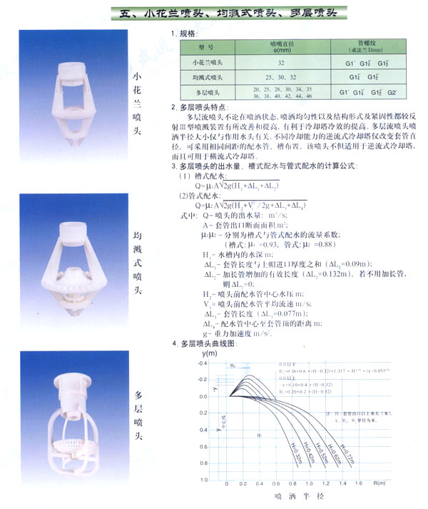 我廠專業(yè)生產(chǎn)各種環(huán)保設(shè)備配件,“鶴清”牌注冊商標水處理設(shè)備及配件為“江蘇省市場公認名牌產(chǎn)品”。產(chǎn)品銷往國內(nèi)二十多個省、市、自治區(qū),并遠銷蘇丹、澳大利亞等國,深得用戶好評。二十多年來,我廠以“科學(xué)管理,技術(shù)領(lǐng)先,質(zhì)量第一,顧客至上”為宗旨,不斷創(chuàng)新。隨著科技的發(fā)展,我廠在中國電機工程協(xié)會冷卻塔專業(yè)委員會、中國水利水電科學(xué)研究院冷卻水研究所的大力支持和幫助下,產(chǎn)品有了很大的發(fā)展,并獲得了改進型噴濺裝置和均濺式噴濺裝置兩項專利。最近本廠又研制生產(chǎn)了多種效率更高的塔用新型填料和收水器。塔用噴頭、塔芯填料、收水器、污水處理填料、濾水帽、曝氣頭等已有兩百多個品種,可供不同用戶選用。