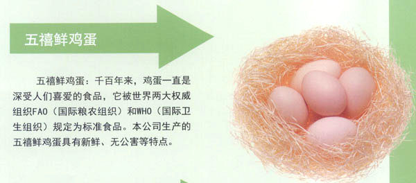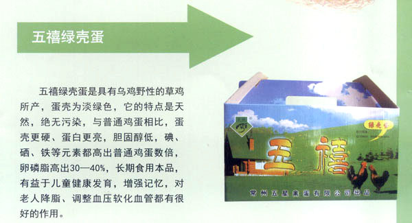 常州五星禽蛋有限公司創(chuàng)建于1990年,是常州市最大的禽蛋生產(chǎn)基地。公司秉承“辦實(shí)事、服務(wù)城市;上水平,掙創(chuàng)效益”的經(jīng)營宗旨。注重科技開發(fā)與管理創(chuàng)新,全力打造“五禧”品牌。公司于2000年通過了ISO9002質(zhì)量體系認(rèn)證;2004年又通過了無公害雞蛋產(chǎn)地和產(chǎn)品認(rèn)證,并獲兩項(xiàng)專利。 經(jīng)多年努力實(shí)現(xiàn)了“五禧”產(chǎn)品系列化。現(xiàn)公司每年向市場提供有“五禧”鮮雞蛋,“五禧”土雞蛋,“五禧”ELC蛋,“五禧”綠殼草雞蛋,成為了不同消費(fèi)群體的理想選擇!拔屐钡岸啻螛s獲常州市場知名商標(biāo)稱號(hào)。