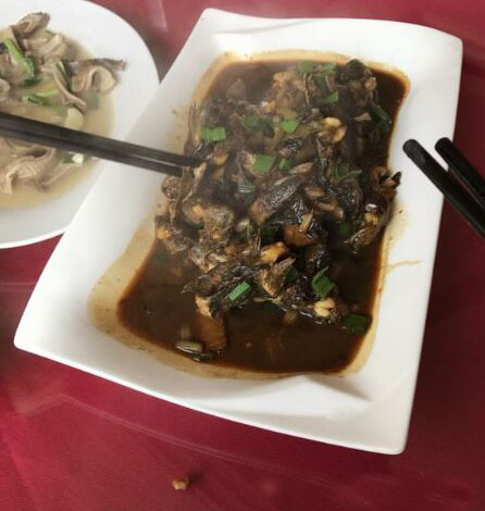 菜肴介紹:以滆湖小刀魚為新鮮的原材料,佐以自家的配料,在油鍋中煎炸而成。炸得金燦燦的小刀魚上,撒上把新鮮的香菜末,看著就讓人流口水。 菜肴介紹:當(dāng)天的農(nóng)家菜評比中,以豬蹄為主題的農(nóng)家菜有好幾道,可只有這道慶蘭豬爪,獲得了評委們的一致青睞。色澤鮮亮,熬得入味,吃完后口中有回味。當(dāng)天的比賽中,評委還“嫌”慶蘭樓送來參評的豬蹄太少了,七八個評委都不夠吃。 “下婆魚本來叫下坡魚,大家吃了都覺得好,一傳十十傳百地就給叫走了音,變成下婆了!鼻弭贼缘臏韬铮痪W(wǎng)撈出千百條鮮靈靈的小魚兒。新鮮干凈的小 炸得酥脆,就是一道最好的下酒或是下粥菜。揣在兜里當(dāng) 也很不錯呀,嘎嘣咬著,極松脆極鮮美的,魚刺也都炸酥啦,無論是老人還是年輕人、小孩都能吃。 除了漏湖里的魚,嘉澤的鵝、雞、鴨等家禽也遠(yuǎn)近聞名。也是因?yàn)樯鷳B(tài)環(huán)境好的緣故,一群學(xué)農(nóng)的博士在這里開起了大水牛市民農(nóng)園,主打的就是有機(jī)食材。