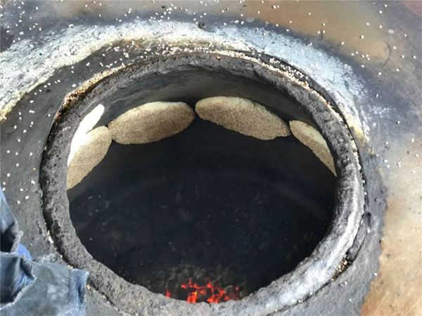 當(dāng)爐火燒得正旺,溫度能高達(dá)近300度,沈國(guó)平就上場(chǎng)了,赤手空拳,一撈一貼,一秒鐘的功夫,就把麻糕貼到了桶壁上。不過(guò)幾分鐘的功夫,麻糕就出爐了。經(jīng)過(guò)炭火爐子烤出來(lái)的,比一些電烤爐烤出的更香、更脆。