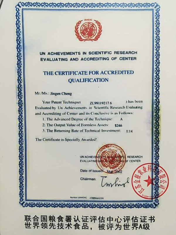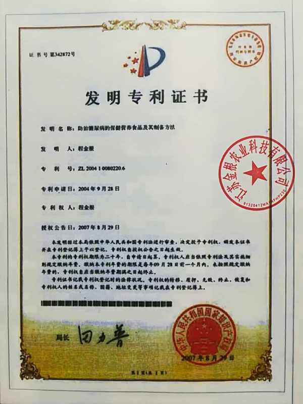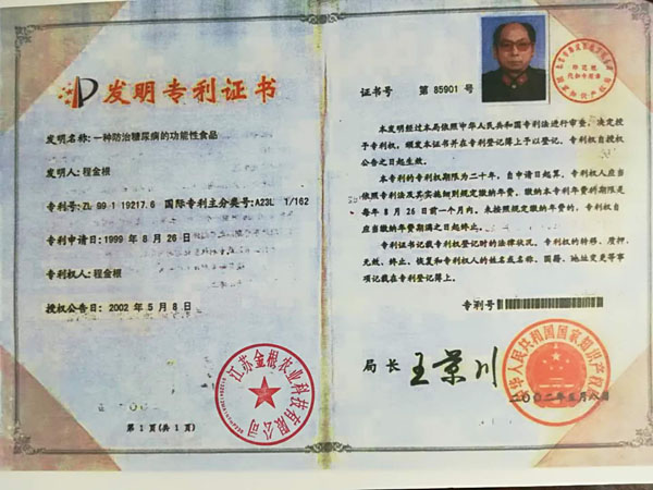 江蘇金根農(nóng)業(yè)科技有限公司是專業(yè)從事無糖食品、糖尿病、肥胖、和中老年人健康食品的研究、開發(fā)、銷售為一體的現(xiàn)代企業(yè)。 經(jīng)高級工程師程金根先生盡二十八年研發(fā),以五谷四豆為原料研制出一種特殊的營養(yǎng)食品。本產(chǎn)品富含人體所需的有機微量元素:鉻、硒、鋅、鎂、鋰等,幾十種氨基酸、膳食纖維及其它營養(yǎng)物質(zhì)。產(chǎn)品原料是按生態(tài)農(nóng)業(yè)有機的標準通過生物工程的種、培植方法,為谷糧增加了多種營養(yǎng)成份,按科學配方生產(chǎn)出“老山仁”系列產(chǎn)品。 本產(chǎn)品原料是在高寒、高濕、旱地等種植,要求施農(nóng)家肥,采用生物治蟲,因此是無公害的優(yōu)良品種。目前公司有四個種植基地,分別在江西、江蘇、陜西等地。 一種防治糖尿病功能性食品專利號:ZL99119217.6。 “程金根”系列產(chǎn)品先后獲得二項發(fā)明專利,并經(jīng)聯(lián)合國科技成果評估論證為A級產(chǎn)品,屬世界領先技術。在韓國、美國、香港、德國分別榮獲新技術、新產(chǎn)品博覽會金獎。 2006年經(jīng)國家農(nóng)業(yè)部、發(fā)展改革委員會、聯(lián)合國糧農(nóng)組織代表、中醫(yī)研究院、中國科學技術協(xié)會、中醫(yī)藥大學、農(nóng)業(yè)大學、農(nóng)學院、中國保健協(xié)會、糧油協(xié)會、食品研究所等十幾位專家對該專利產(chǎn)品做了評估論證,一致認為該項技術先進產(chǎn)品突出、食用安全,并給予很高的評價。 論證意見: 1、這項專利技術填補了國內(nèi)糖尿病特種功效食品的專用品種和栽培技術空白。 2、采用有機食品技術,并以有機農(nóng)產(chǎn)品為原料加工特種營養(yǎng)食品,提高了產(chǎn)品的安全性。 3、用鉻、硒、鋅、鎂、鋰生物強化栽培技術已獲得發(fā)明專利,為國際先進水平。 4、經(jīng)過10多年的應用實踐,進一步證明了通過飲食調(diào)理,可預防糖尿病,對已患糖尿病者有緩解和預防糖尿病綜合癥的功效。 “程金根”系列產(chǎn)品具有低脂肪、低熱量、高蛋白、富含各種微量元素(鉻、硒、鋅、鎂、鋰)、高膳食纖維、具有抗氧化、增加免疫力等特點,經(jīng)常食用有利于膳食營養(yǎng)平衡,是糖尿病、肥胖和中老年人、亞健康群體最佳的健康食品。
