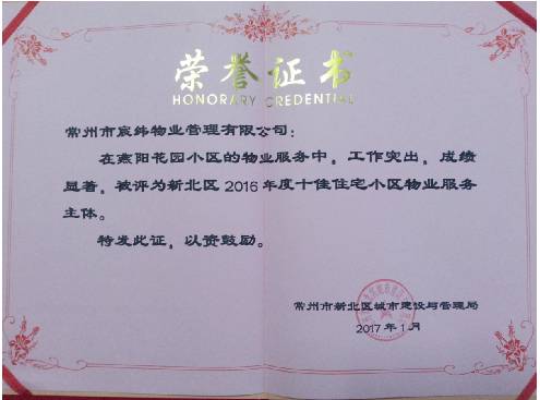 常州市宸緯物業(yè)管理有限公司成立于 2005 年,獲得國家二級資質,是常州市物業(yè)管理協(xié)會理事單位,并通過ISO9001:2008 質量管理體系、ISO14001:2004 環(huán)境管理體系、OHSAS18001:2007 職業(yè)健康安全管理體系,三標一體認證,獲得AAA級企業(yè)資質信用等級、AAA級重合同守信用企業(yè)、AAA級質量服務信譽企業(yè)、AAA級誠信經營示范單位。 常州市宸緯物業(yè)管理有限公司更是一家適應市場需求,積極參與市場經濟競爭的高品質、高效率、專業(yè)化的物業(yè)管理企業(yè)。公司在物業(yè)管理服務上導入 ISO9001:2008 質量管理體系,建立了一整套適應公司發(fā)展的自成體系、行之有效的經營管理方法,在市場中堅持以品牌發(fā)展戰(zhàn)略為目標方針,目前公司所管理的項目共計 25 個物業(yè)類型,包括了住宅小區(qū)、商務辦公樓、學校、工業(yè)園區(qū)、廠區(qū)等。 憑借在常州物業(yè)管理行業(yè)多年的豐富經驗和經營理念,公司將通過推行多元化的服務內容,及互聯(lián)網+的服務模式,努力為每一位客戶提供舒適、高效的服務體驗。公司始終遵循“讓客戶滿意是我們永遠的追求”,不斷探索,勇于創(chuàng)新,隨著經營理念和管理經驗日趨成熟,公司將以市場和客戶的需要為導向,憑借自身的人才、技術、資本、管理等優(yōu)勢,精誠服務,不斷超越客戶的需求,推進物業(yè)管理事業(yè)的發(fā)展。