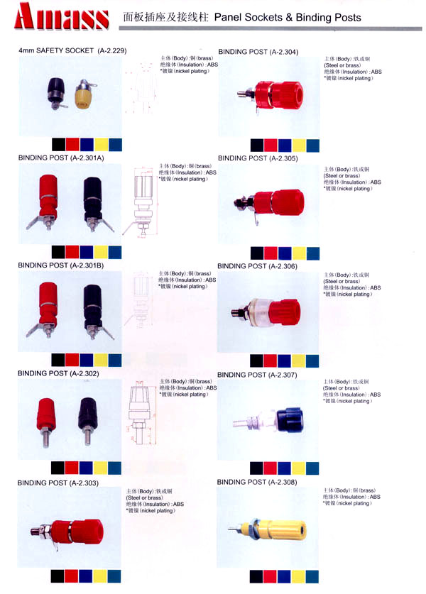 本公司專業(yè)生產(chǎn)各類香蕉插頭,香蕉插座,接線柱,電瓶夾,鱷魚夾,測試導線,測試筆等。產(chǎn)品分2mm/2.5mm/3mm/3.5mm/4mm五大系列,百余種款式, 各種香蕉插廣泛用于儀器、儀表、電力測試、教學、玩具,視聽設備、醫(yī)療儀器,保健產(chǎn)品等領域。公司技術力量雄厚,生產(chǎn)工藝先進,產(chǎn)品遠銷港、臺、歐美,并與飛利浦等國際品牌配套。公司本著精益求精的理念,歡迎新老客戶光臨。 我們擁有資深的工程師和豐富的電子產(chǎn)品銷售經(jīng)驗,專業(yè)生產(chǎn)各類電子接插件產(chǎn)品。 香蕉插頭,香蕉插座,電瓶夾,鱷魚夾等品種齊全、 質(zhì)量可靠,致力服務于通訊、數(shù)據(jù)通信、消費類電子產(chǎn)品、計算機和計算機外圍設備以及工業(yè)應用等領域,能給客戶提供全面采購解決方案。 我們秉承穩(wěn)健作風、誠實經(jīng)營、合理價格、完善服務的宗旨,在全體客戶的支持下,公司不斷創(chuàng)新進取,業(yè)績蒸蒸日上,已與數(shù)十家電子零件制造商及其分支機構建立密切合作關系,在國內(nèi)擁有數(shù)百家固定客戶。