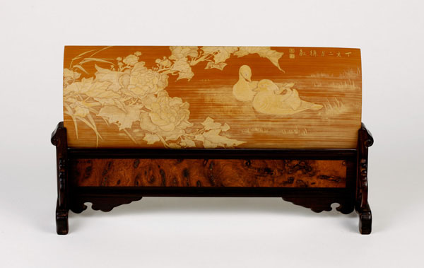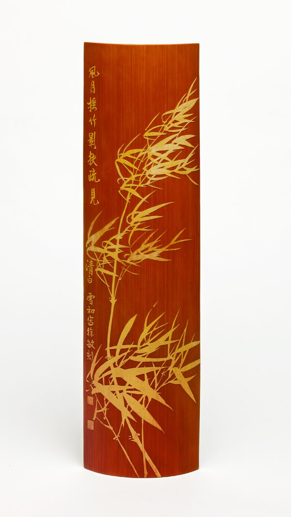 徐敏,一九七四年生于江蘇常州,擅長山水油畫。師從竹刻家范遙青研習(xí)竹刻至今有二十余載。其作品受到竹刻權(quán)威鑒賞家王世襄認(rèn)可,并親筆為她題字褒獎(jiǎng),F(xiàn)為常州市非物質(zhì)文化遺產(chǎn)傳承人。