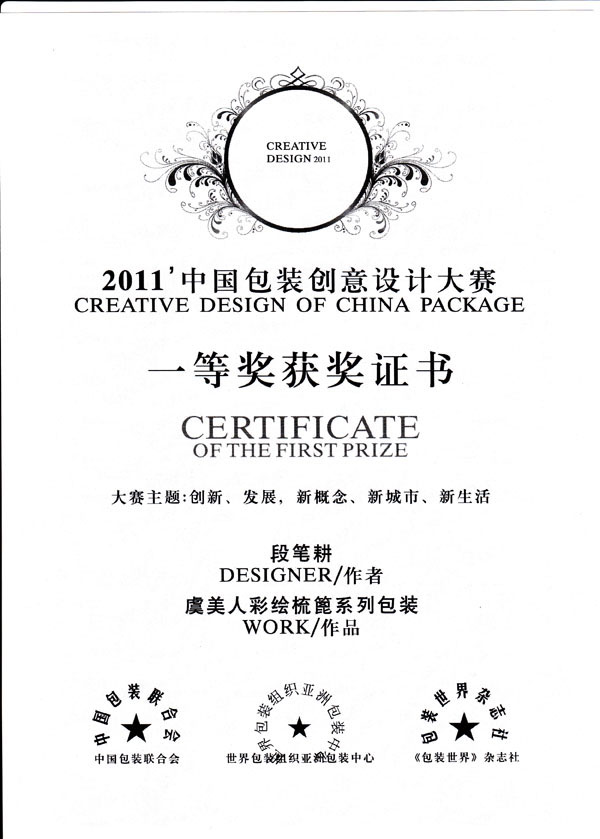 “2011年中國包裝創(chuàng)意設(shè)計大賽“,虞美人彩印梳篦系列包裝獲得一等獎;