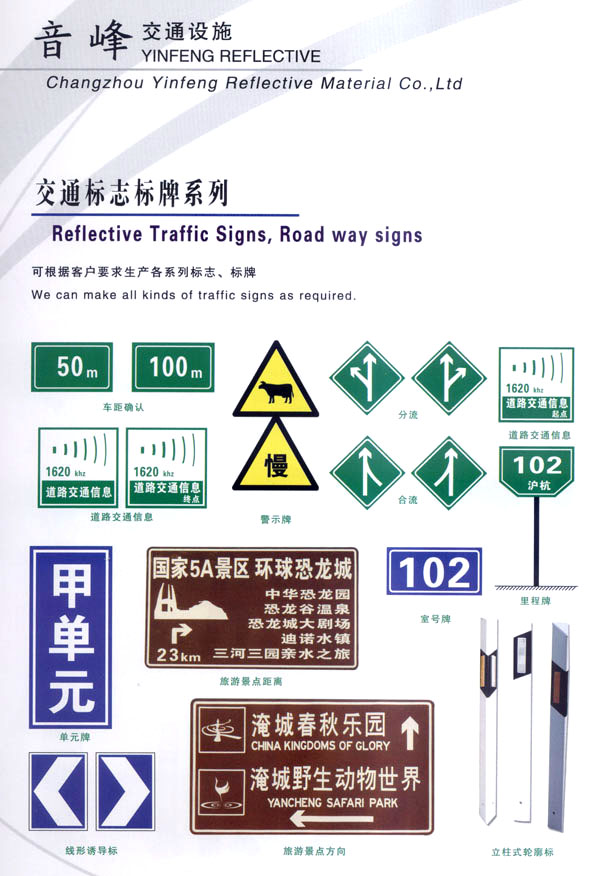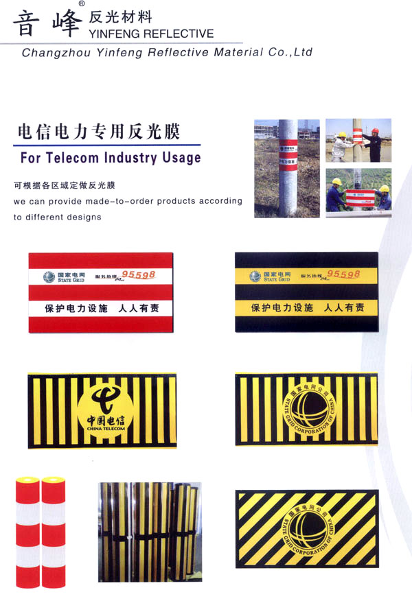 公司主生產(chǎn):廣告級反光膜、工程級反光膜、車牌級反光膜、高強(qiáng)級反光膜、廣告級反光雙色條、發(fā)光膜、噴繪反光膜、晶彩格、電信電力反光膜,鍍鋁膜等等..........根據(jù)國家指令法規(guī):反光材料的領(lǐng)域,如公路標(biāo)志、標(biāo)牌、標(biāo)線、礦山、鐵路等......... 反光膜廣泛應(yīng)用于各種廣告標(biāo)志牌,公路鐵路的導(dǎo)向牌、指示牌、地名牌、車牌,道路交通標(biāo)志,物業(yè)小區(qū)標(biāo)志,臨時(shí)施工標(biāo)志,廣告宣傳、安全防護(hù)、高等級公路的各種警示標(biāo)語,標(biāo)識牌等。