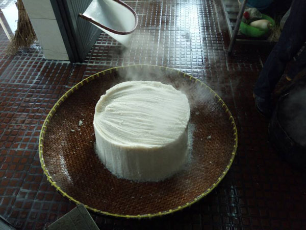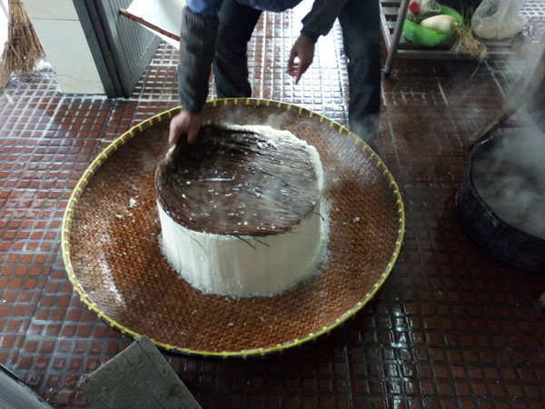第一步:蒸糯米飯,老徐先用煤爐將水燒開,再將洗凈泡好的糯米放入一只大木桶中,放在爐子上蒸。除此以外,老徐還要不斷攪拌,保證糯米受熱均勻,直至散發(fā)出水蒸氣。為了保證米飯溫度,老徐特地用塑料薄膜將木桶封住,并用皮筋加固。蒸糯米飯,大約需要半個(gè)多小時(shí)。