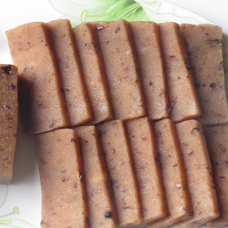 "金豐"牌年糕選料考究,以優(yōu)質(zhì)糯米為主,香氣濃郁、光滑細(xì)膩,吃起來(lái)很筋韌,口感極佳。這種年糕質(zhì)量穩(wěn)定,不易發(fā)霉發(fā)酸,保管也很方便,不需浸水,久放亦不致風(fēng)堅(jiān)變硬,食用前切片不費(fèi)勁,只要切成1厘米的薄片放入粥鍋,或加水適量在微波爐中熱上兩分鐘左右即可食用。若選擇吃火鍋的主食,就更受消費(fèi)者歡迎了。當(dāng)然還可以制作成更加美味的佳肴。