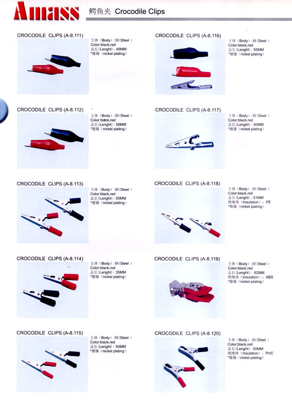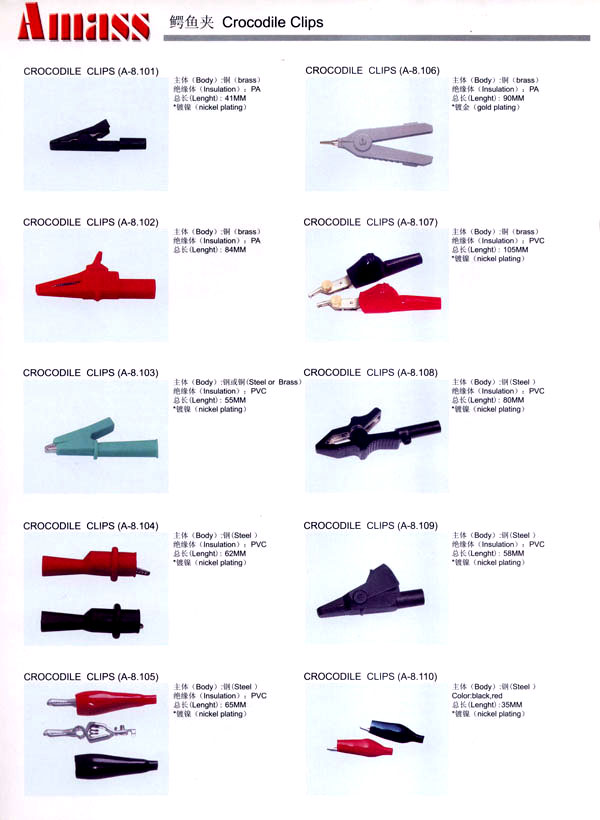 本公司專業(yè)生產(chǎn)各類香蕉插頭,香蕉插座,接線柱,電瓶夾,鱷魚夾,測試導(dǎo)線,測試筆等。產(chǎn)品分2mm/2.5mm/3mm/3.5mm/4mm五大系列,百余種款式, 各種香蕉插廣泛用于儀器、儀表、電力測試、教學(xué)、玩具,視聽設(shè)備、醫(yī)療儀器,保健產(chǎn)品等領(lǐng)域。公司技術(shù)力量雄厚,生產(chǎn)工藝先進(jìn),產(chǎn)品遠(yuǎn)銷港、臺、歐美,并與飛利浦等國際品牌配套。公司本著精益求精的理念,歡迎新老客戶光臨。 我們擁有資深的工程師和豐富的電子產(chǎn)品銷售經(jīng)驗,專業(yè)生產(chǎn)各類電子接插件產(chǎn)品。 香蕉插頭,香蕉插座,電瓶夾,鱷魚夾等品種齊全、 質(zhì)量可靠,致力服務(wù)于通訊、數(shù)據(jù)通信、消費(fèi)類電子產(chǎn)品、計算機(jī)和計算機(jī)外圍設(shè)備以及工業(yè)應(yīng)用等領(lǐng)域,能給客戶提供全面采購解決方案。 我們秉承穩(wěn)健作風(fēng)、誠實經(jīng)營、合理價格、完善服務(wù)的宗旨,在全體客戶的支持下,公司不斷創(chuàng)新進(jìn)取,業(yè)績蒸蒸日上,已與數(shù)十家電子零件制造商及其分支機(jī)構(gòu)建立密切合作關(guān)系,在國內(nèi)擁有數(shù)百家固定客戶。