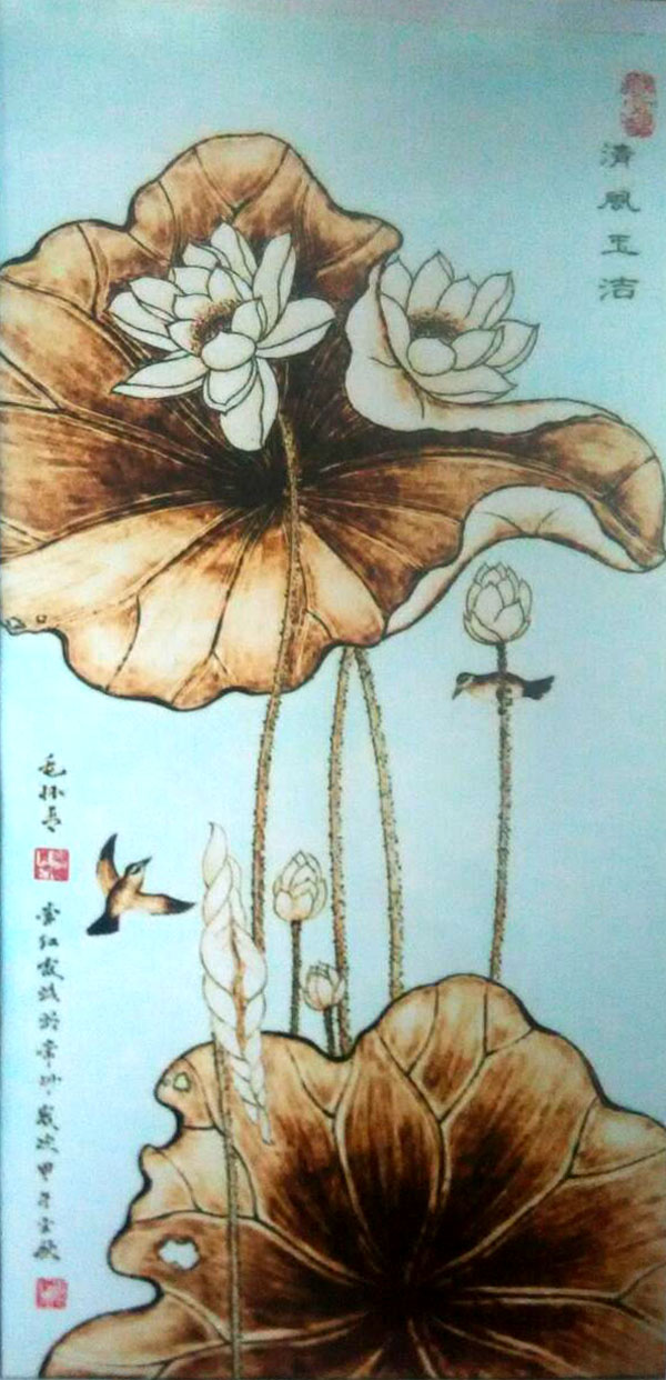 毛懷青,江蘇常州市武進(jìn)人。 中國工藝美術(shù)學(xué)會會員,常州市中國烙畫研究會副會長,常州市文博鑒賞協(xié)會理事,非物質(zhì)文化遺產(chǎn)烙畫傳承人。高級工藝美術(shù)師。 年輕時學(xué)習(xí)國畫、油畫中年蔓現(xiàn)掌州咯畫源遠(yuǎn)流長、歷史悠久,有著其它美術(shù)門類不具備的藝術(shù)風(fēng)格與特色。可謂是工藝美術(shù)中的一朵十分亮麗的藝術(shù)奇葩,是我民族先人給我們留下的一份不可多得十分珍貴的一份文化遺產(chǎn)。為弘揚與發(fā)展這份優(yōu)秀文化遺產(chǎn),我從此下定決心研究烙畫,愿付出一份力量為振興烙畫事業(yè)做出貢獻(xiàn)。至今已潛心研究幾十年,取得了可喜的成績,被業(yè)界公認(rèn),社會關(guān)注與認(rèn)可。有“江南烙畫第一筆”之美譽(yù)。 近年來,創(chuàng)作的烙畫作品分別獲得過全國、省市級的金、銀、銅獎多次。中央電視臺曾兩次播放過本人的烙畫作品,江蘇電視臺、常州電視臺也曾多次播放過本人的作品與烙畫藝術(shù)生涯,揚子晚報、常州日報、常州晚報也曾多次報導(dǎo)過本人的烙畫作品,出版物有三種版本都能查閱到介紹本的烙畫從藝生涯與藝術(shù)業(yè)績。